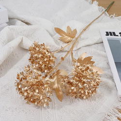 Plástico Hortensia dorada Flor artificial Decoración de la boda Arreglo floral