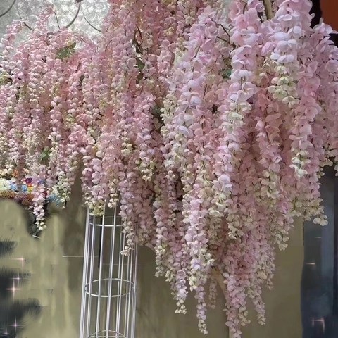 Venta al por mayor de flores de glicinia artificiales de seda de colores, paquete de 12 flores de ratán de autobús colgantes largas para decoración de bodas